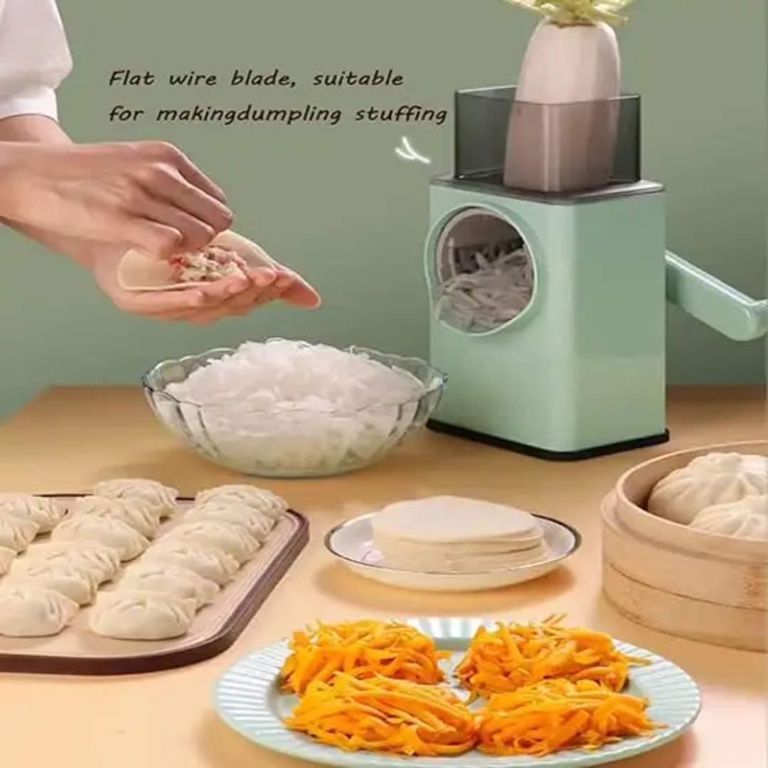 Coupe-légumes multifonction manuel. Râpe rotative pour oignons, citron et légumes. Idéal pour la cuisine domestique.